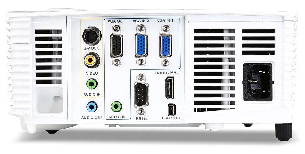 Tilslutningsstik | Audio In: Mini Jack x 2, Audio Out: Mini Jack, Composite: RCA, HDMI, RS232: DB-9pin, S-Video, USB, VGA In: Dsub-15pin x 2, VGA Out: Dsub-15pin |