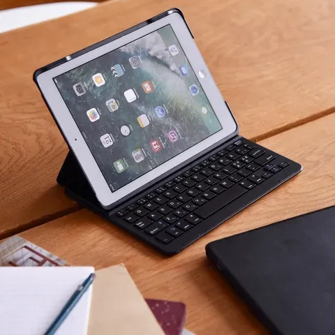 Lej et flot og stilrent iPad bluetooth keyboard som passer til iPad model 2017/2018 med dansk tastatur og udført i flotte kvalitetsmaterialer. Det er lavet således, at keyboardet er en del af et sammenklappeligt etui. I etuiet har du altså både din iPad (2018), iPad (2017) og selve keyboardet.