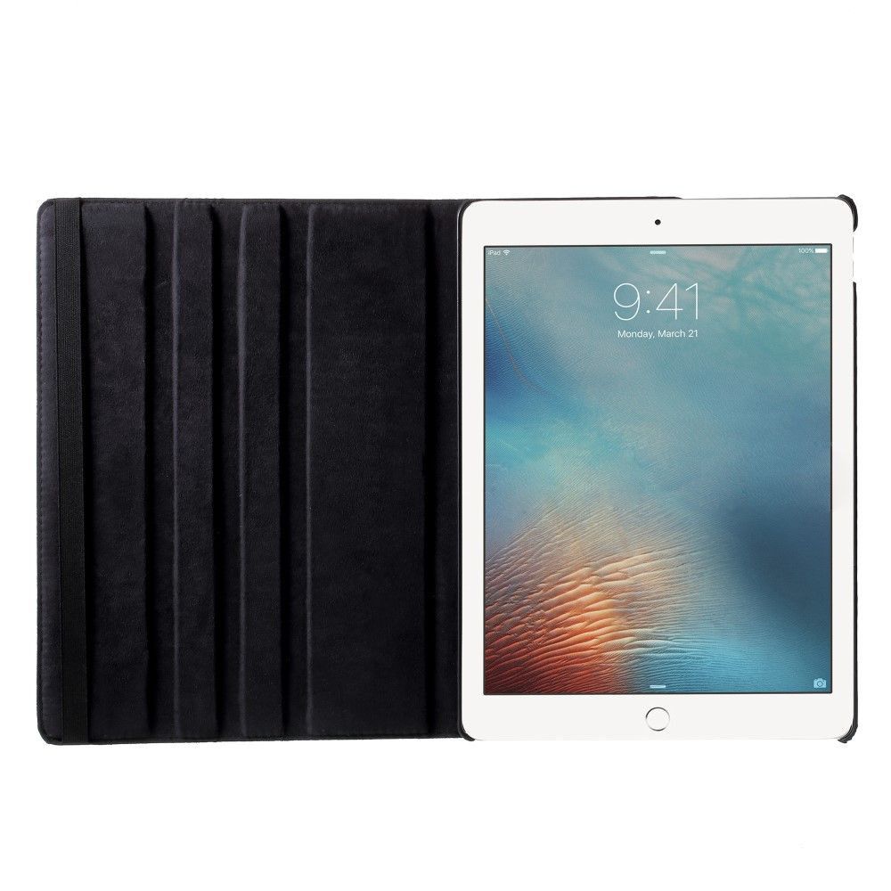 Lej et roterbart cover til iPad 9.7". Roterbart 360 grader læder cover - Sort - Passer til iPad Air2, iPad 2017, iPad 2018. Enkelt og elegant iPad cover. Fremstillet af kunststof og indeholder flere praktiske ting, som f.eks. kortholder, enten til kreditkort, id kort eller visitkort.
